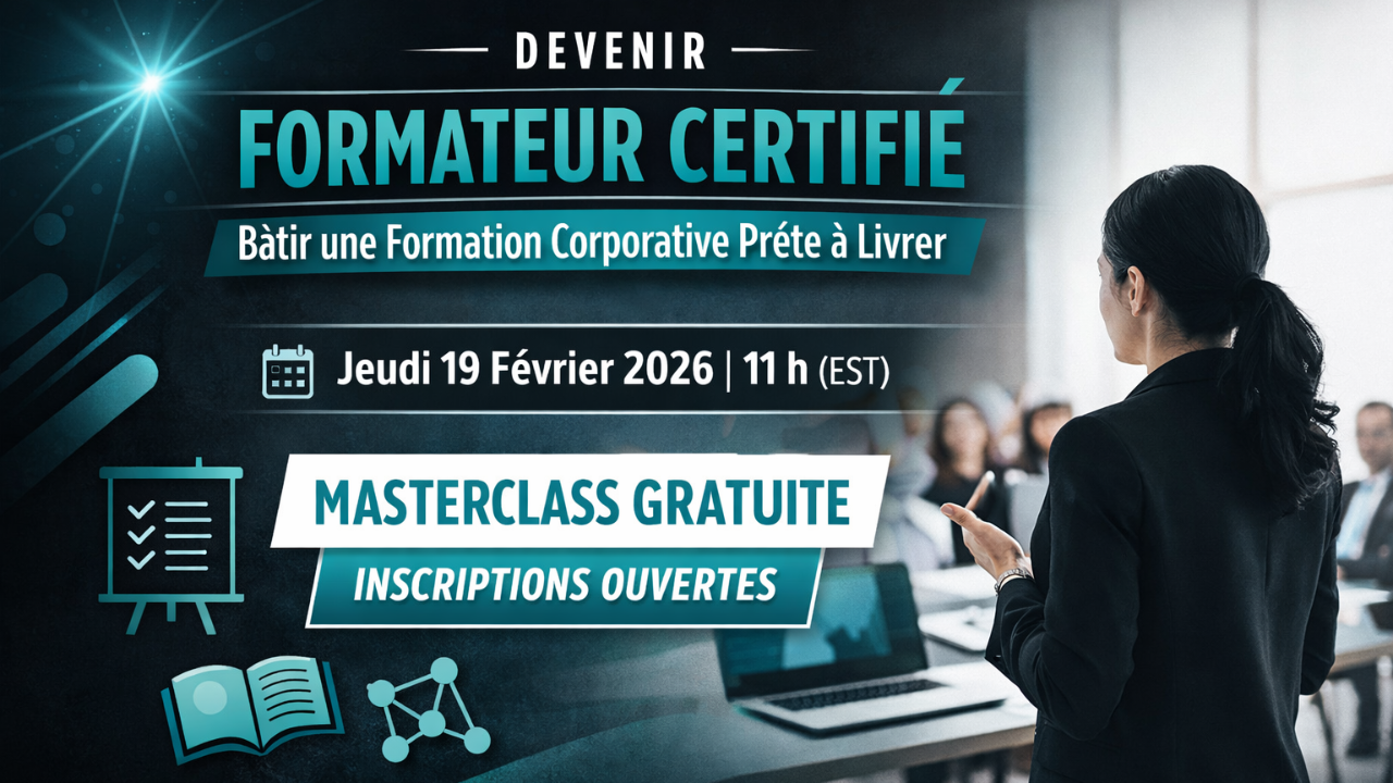 Devenez Formateur Certifié : Créez, animez et vendez votre première formation prête-à-livrer.
