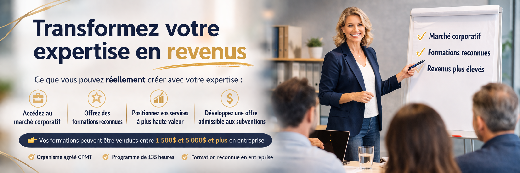 👉 Vos formations peuvent être vendues entre 1 500$ et 5 000$ et plus en entreprise