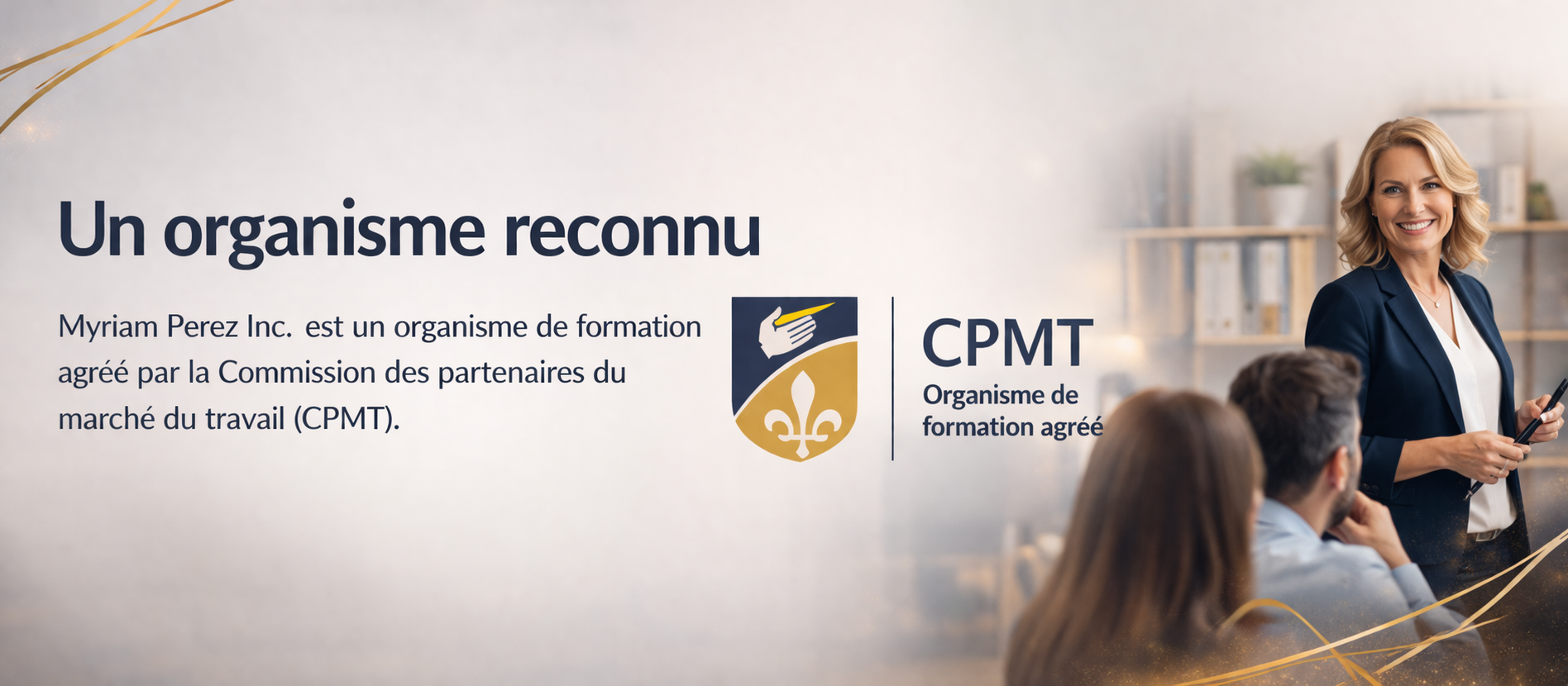 • Accès aux Subventions : Nous vous préparons à l'agrément (CPMT) pour que vos formations en entreprise soient admissibles aux subventions, un argument de vente majeur pour vos clients corporatifs.